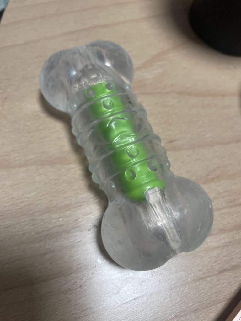 が、amazonの口コミをみると、噛む力が強い子だと簡単に真っ二つにしてしまい、中のプラスチックを出してしまうんだそう。
